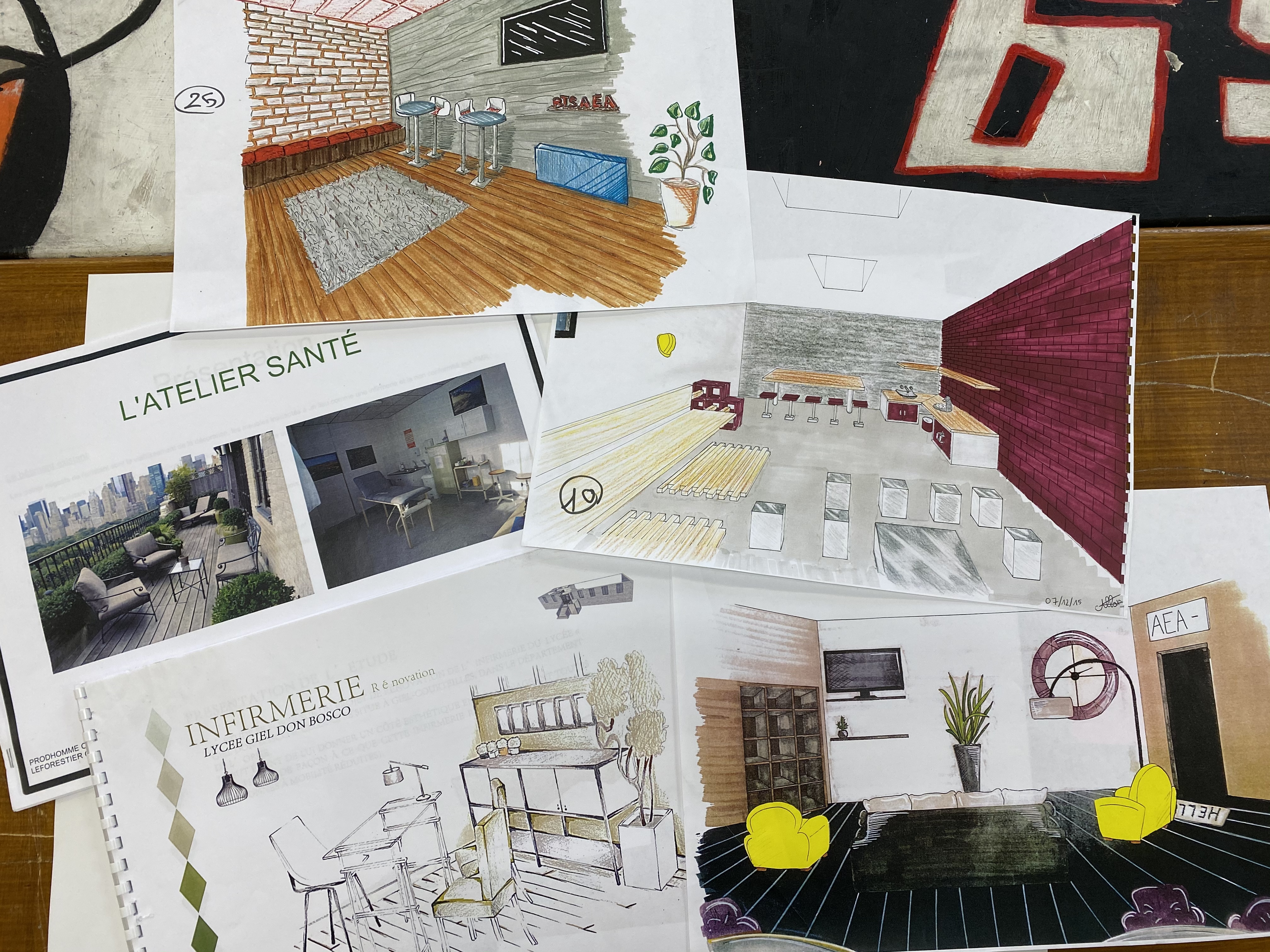 Chaque année, les BTS ERA (étude et réalisation d’agencement) réalisent un dossier à travers lequel ils font une étude d’aménagement de nos locaux. Ils proposent les couleurs et les matériaux aux tendances actuelles et qui répondent aux normes ERP (établissements recevant du public) et PMR (personne à mobilité réduite).