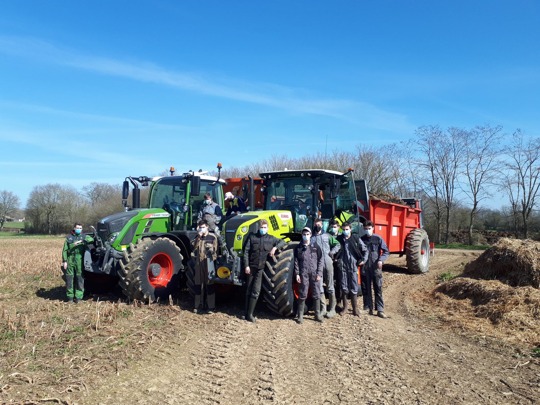 Mise en application des cours théoriques pour nos élèves de première Bac Pro Agroéquipement, lors d’un TP épandage. Les lycéens ont pu prendre en main un tracteur CLAAS prêté par la société SM3 ainsi qu’un FENDT fourni par la société Lesieur. Était présent également, un télescopique et deux épandeurs de notre établissement.