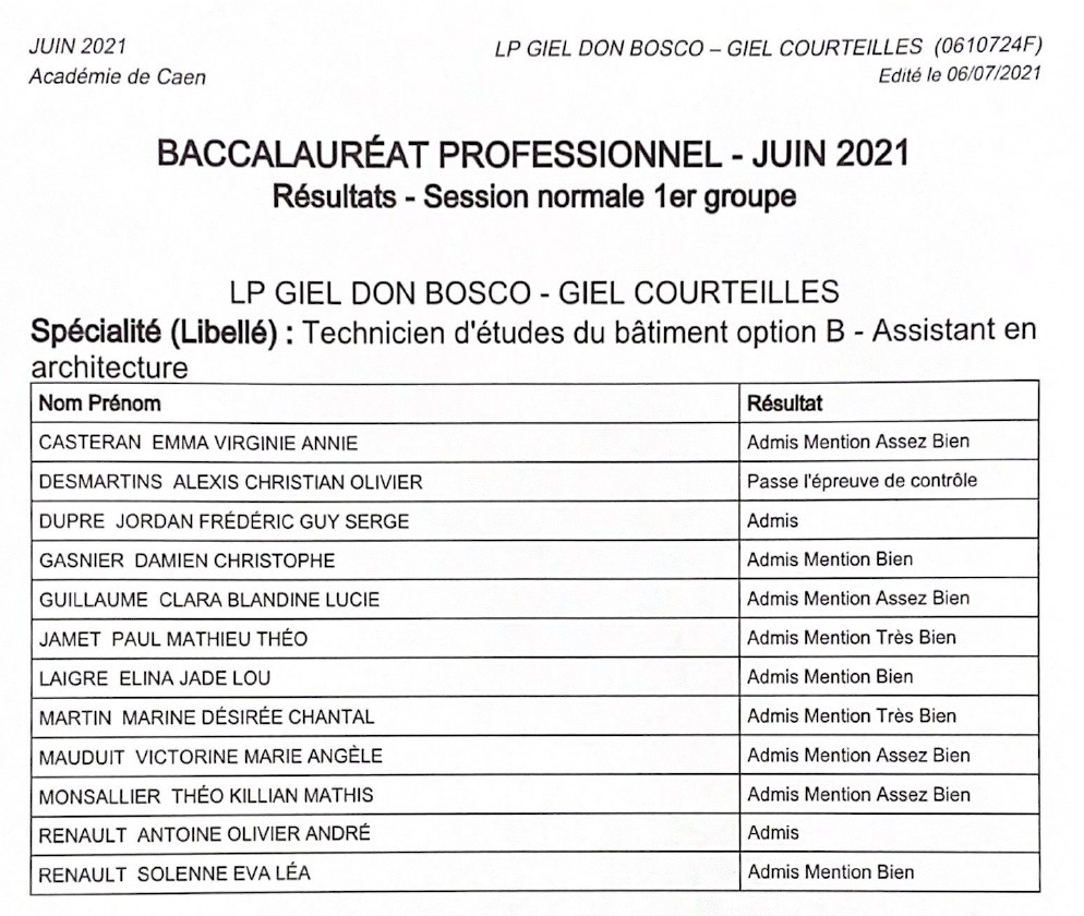 ← article précédentRésultats du baccalauréat des candidats en Menuiserie article suivant →Résultats du baccalauréat des candidats en Froid et clim Articles associés Ne rater pas cet article Rencontre avec deux anciennes élèves du Bac Pro SAPAT26 janvier 2021-Posté par GielAdmin Aline et Marine, deux anciennes élèves du Bac Pro SAPAT (Services Aux Personnes et Aux Territoires) du lycée agricole et actuellement … Lire plus →actualité giel1 Résultats du brevet d’études professionnelles des candidats en première travaux agricoles et conduite d’engins25 juin 2021-Posté par GielAdminLire plus →actualité giel1 Résultats des candidats en CAP Ebéniste6 juillet 2021-Posté par GielAdminLire plus →actualité giel1